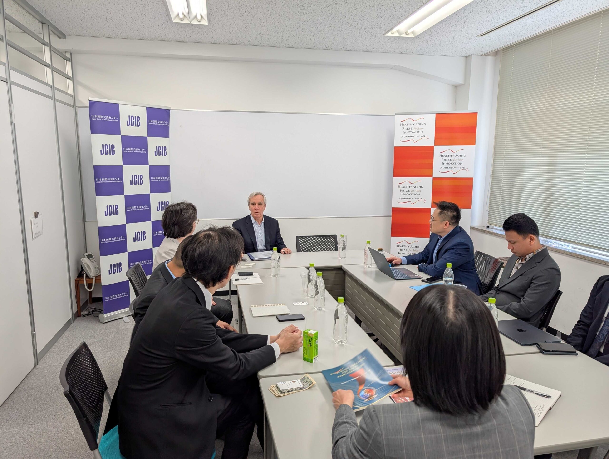 The group next travelled to Tokyo. They began with a breakfast roundtable with business leaders and former Minister for Health, Labour, and Welfare Keizo Takemi. Several of the private sector representatives during the discussion expressed that the HAPI winners’ activities represented best practices that could be replicated elsewhere, while also offering an investor perspective and encouraging winners to think carefully about how they can demonstrate the impact of their projects. Following the roundtable, participants had an opportunity to meet with Michael Hodin, CEO of the Global Coalition on Aging (GCOA), who discussed the work of GCOA and how they engage the business sector and drive discussions globally around aging, expressing his hope to engage HAPI winners at their annual Silver Economy Forum. Finally, participants concluded their day with a chance to meet Hon. Sakon Yamamoto, member of the House of Representatives (LDP), who discussed his perspectives on the winners’ projects from the point of view of a national-level elected official.